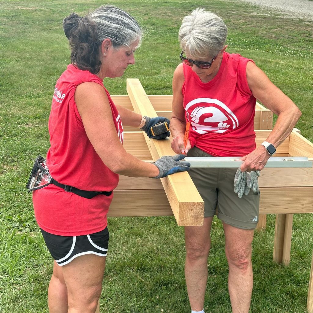 The work was an adventure! We built raised garden beds for Teter Organic Farm. It was outside of my comfort zone to use power tools and physically build something. But it was not just “something,” these beds will benefit people with accessibility issues that may not be able get down on their knees and work in the dirt. We literally brought the dirt up to them. It also helped Farm Manager Katy Rogers, who never stops smiling, and the amazing work she does at Teter with food insecurity through donations to food pantries in Hamilton County. On a side note, I learned how to use a miter saw, power drill, and to swing a sledgehammer!
